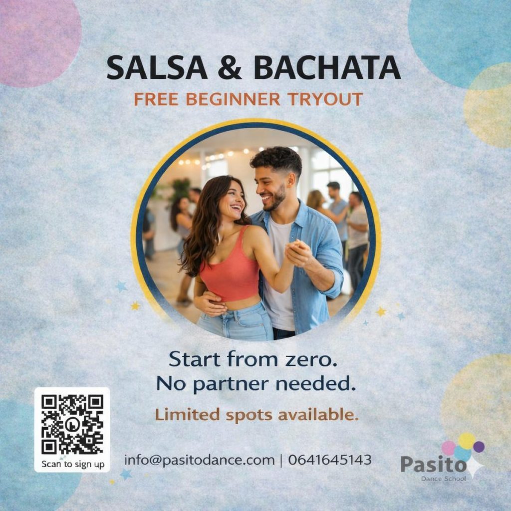 Join the free beginner tryout weekend and discover if dancing at Pasito Dance School is for you.